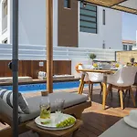 Louis Chris Le Mare - Luxury som ligger i Pernera område i Protaras, tilbyder gratis parkering, en udendørs pool og en solterrasse, samt adgang til Trinity beach, som ligger 750 meter derfra. Faciliteterne på værelset inkluderer satellit-tv, en privat værdiboks, strygejern og strygebræt.